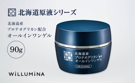 千葉県香取市から原液美容「北海道産プロテオグリカン配合オールインワンゲル」をお届けします。 「北海道産プロテオグリカン配合オールインワンゲル」は、 毎日忙しい女性にうれしい多機能化粧品です。 ヒアルロン酸より保湿力があるといわれているプロテオグリカンの原液を贅沢配合! ぷるんとゲルが、気になる肌悩みを一挙に解決してくれます。 原液の力が体感できる「北海道産プロテオグリカン配合オールインワンゲル」を、 ぜひお試しください。 ◆注目の保湿成分「プロテオグリカン」 プロテオグリカンとは、北海道産鮭の鼻軟骨を加工した美容保湿成分。 その保湿力はヒアルロン酸の約125%と言われ、 お肌を乾燥から守り、ハリと弾力を与えてくれます。 ◆豊富な引き締め成分 肌を引き締める複合成分として、ビタミンA誘導体や加水分解コラーゲン、 ヒアルロン酸Na、アセチルデカペプチド-3(全て保湿成分)を配合。 お肌を引き締めハリ感のある肌へ導いてくれます。 ◆こだわりのオールインワン 化粧水+美容液+乳液+クリームの4つに加え、パックの機能も併せ持つ多機能化粧品。 洗顔後の面倒なお手入れいらずで、時短なのに贅沢ケアができる優れものです。 香料、着色料、鉱物油、パラベン、アルコール不使用など、肌への思いやりも◎ ?ご使用方法? 朝・夜ご使用になれます。洗顔後、水分をふきとった清潔なお肌にご使用ください。 (1)付属のヘラ(スパチュラ)で適量をとります。 (2)お顔全体にやさしくなじませてください。 ※乾燥が気になる箇所には重ねづけしてください。 ※メイクはゲルがお肌になじんでから行ってください。 乾かないうちにメイクをするとムラになることがあります。 【北海道原液シリーズとは】 素材にこだわるウィルミナが作る、北海道産原液美容液を中心としたシリーズです。 原液の力を肌にまっすぐ届けるラインナップをお届けしています。 ■生産者の声 ◇WiLLUMiINA ウィルミナは、1984年に源流企業の一事業部門としてスタート。 化粧品・ヘアケア・オーラルケア・健康食品などの品質にこだわった製品を提供し続けている。
