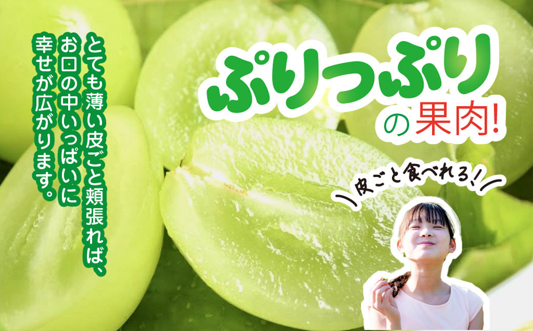 鮮やかな緑の大きな果粒に、強い甘さと爽やかな香りが詰まっています。