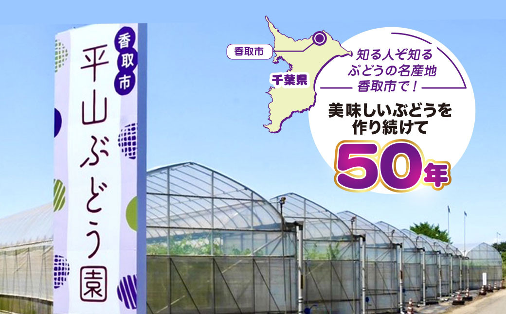 知る人ぞ知るぶどうの名産地・香取市で、美味しいぶどうを作り続けて50年の平山ぶどう園が、自信をもってお届けするシャインマスカットです。