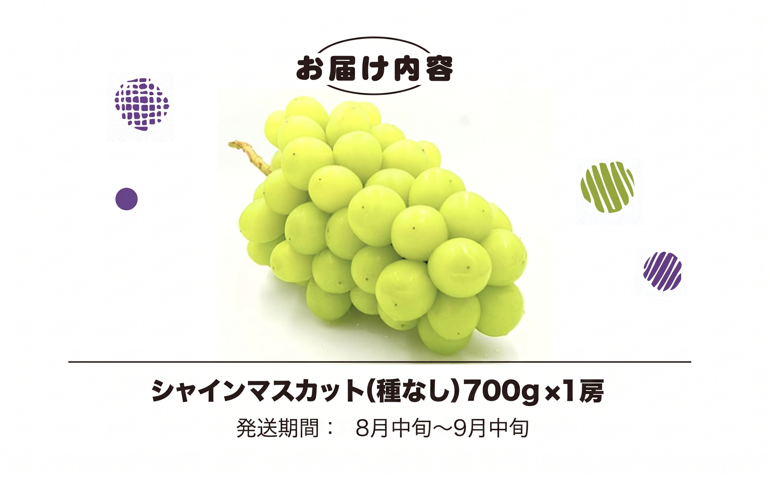 | 容量 | シャインマスカット(種なし)700g × 1房 |