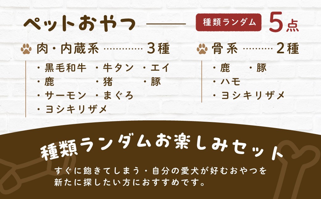 内容お楽しみセットは、好き嫌いが多い・すぐに飽きてしまう・自分の愛犬が好むおやつを新たに探したい方におすすめです。