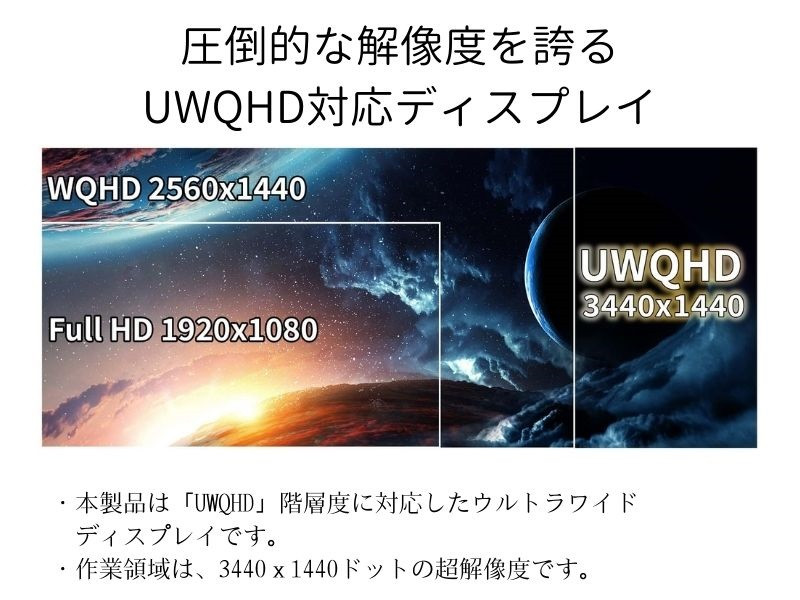 UWQHD解像度に対応した曲面型の液晶モニターです。