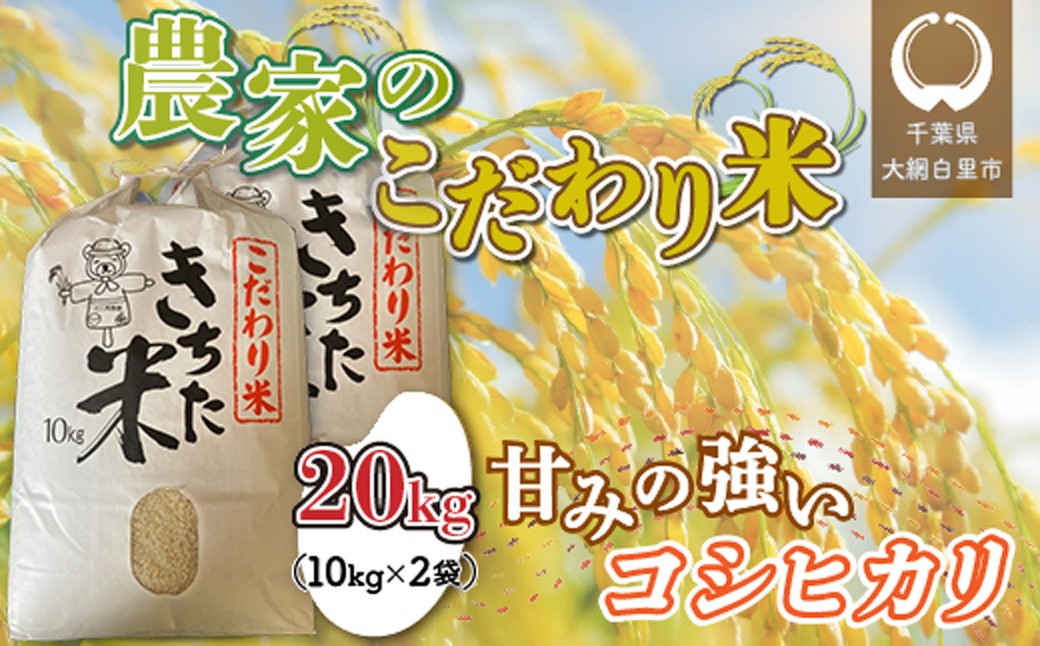 チョイスPayポイントと交換できる品 丹精こめて栽培した、純米100%のコシヒカリです。 【令和7年産】千葉県 大網白里市産 こだわり米(コシヒカリ)20kg(10kg×2袋)J006 お米 20kg 千葉県産 大網白里市 コシヒカリ 米 精米 こめ 送料無料