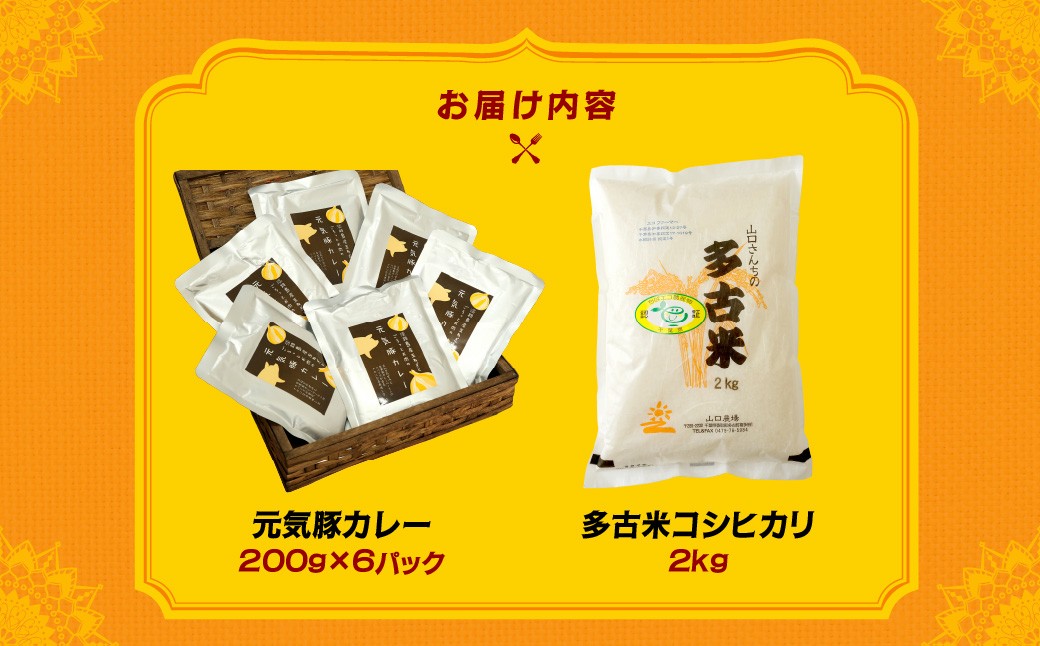 ご飯にはやっぱりカレー!「多古米コシヒカリ2kg」と「元気豚カレー200g×6」セット TAKF021