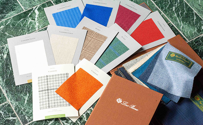 素材の良さはもちろん高いファッション性を兼ね備えた豊富な生地からお選びいただけます。希少なウール素材やカシミア、ヴィキューナまで、「ロロピアーナ」「エルメネジルド ゼニア」「ドーメル」など世界の一流の生地ブランドから自分だけの一着をお仕立てください。