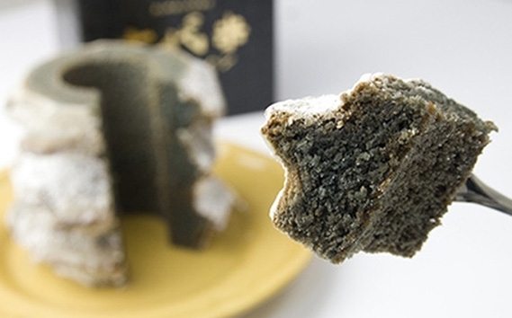 芝山産黒米を使用した米粉の黒いバウムクーヘン。