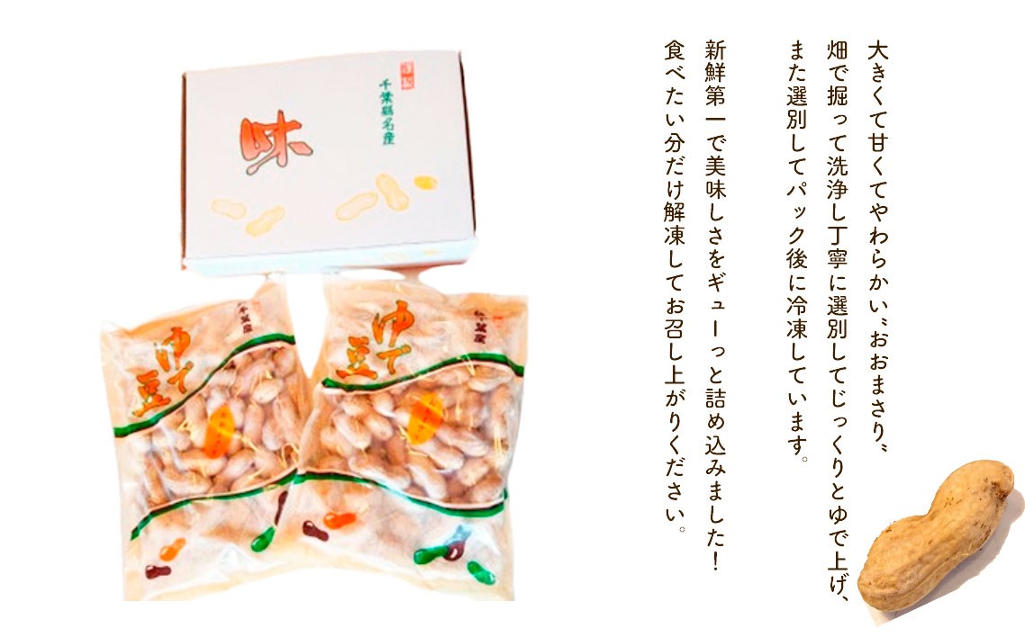 大粒でやわらかいおおまさり、解凍するだけで楽しめる冷凍ゆで落花生1kg 冷凍ゆで豆・おおまさり 500g×2袋 / ピーナッツ 落花生 大きくて甘くてやわらかい 新鮮 千葉県 No.039