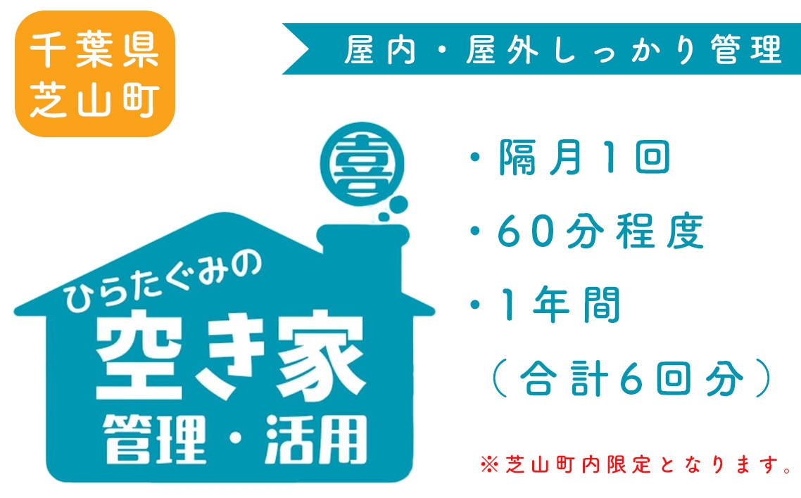 芝山町限定・空き家管理6回分、屋内外の点検や通風・清掃まで対応 ふるさと納税 芝山町 空き家管理【6回分】屋内外を点検・管理 / 空き地 外観確認 屋内確認 郵便物確認 通風 換気 通水 簡易清掃 掃除 千葉県 No.076