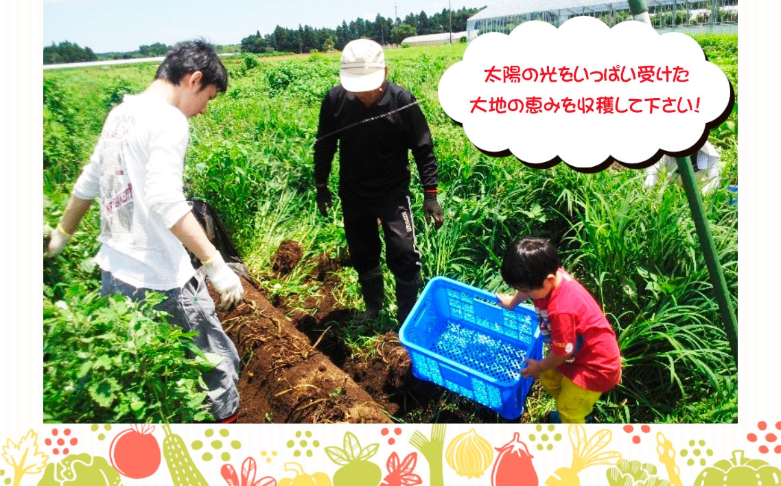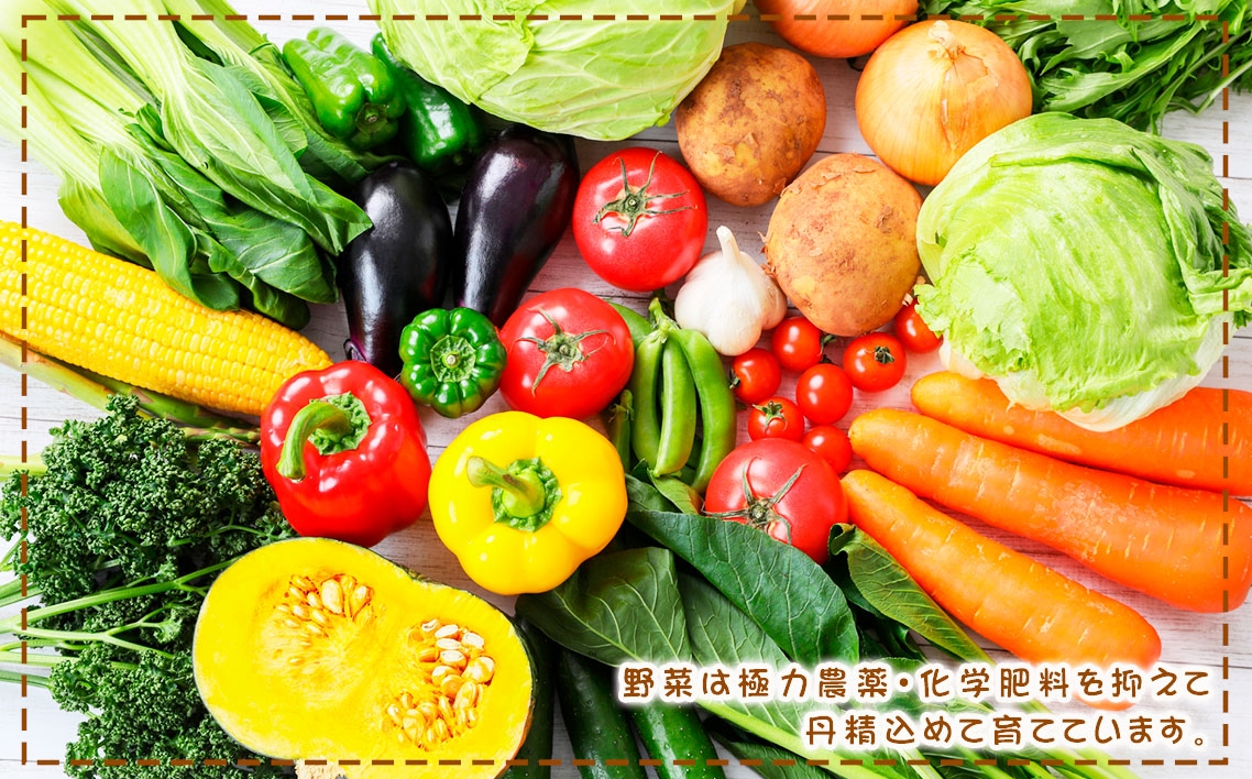 野菜は極力農薬・化学肥料を抑えて丹精込めて育てています。太陽の光をいっぱい受けた大地の恵みを収穫して下さい!