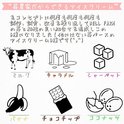 BELL FARMのいちごと相性の良い組み合わせを追求し作り上げた6種類のアイスクリームです。