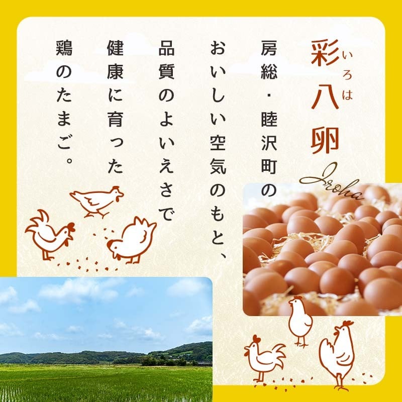 1987年創業。親戚の方が睦沢町の現在の場所で養鶏をしていたことがきっかけでスタートしました。美味しい空気、品質の良い餌、徹底した健康管理を行ったたまご「彩八(いろは)」は、弾力があり、黄身が鮮やかでふっくら、新鮮でおいしいためギフトとしても人気があり、睦沢町や都内の飲食店でも使われています。また、オーナー手作りの直売所では、少量入りから個数や梱包を選んで買うこともできます。