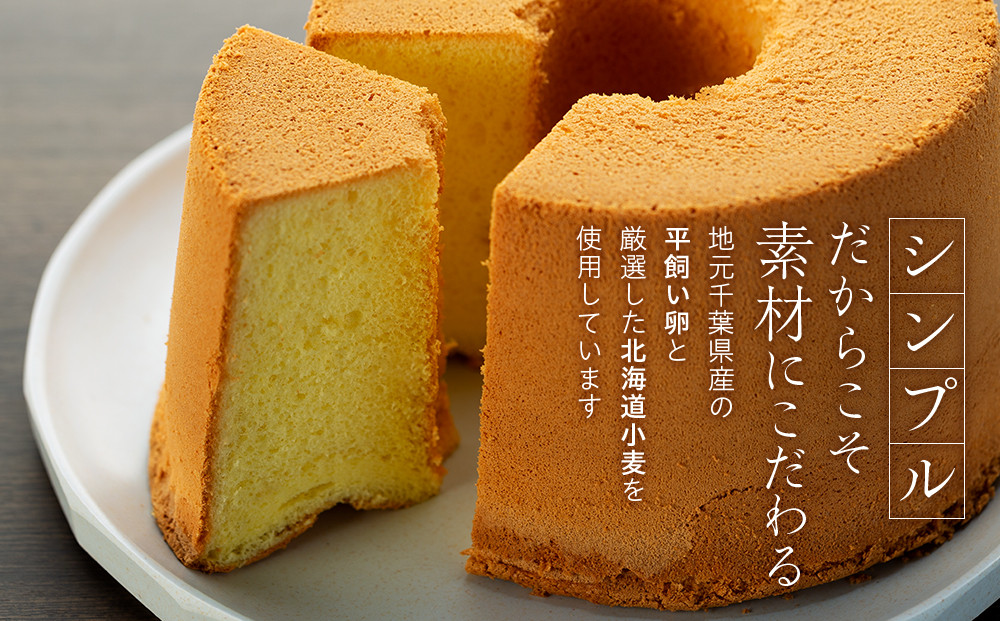 シンプルだからこそ素材にこだわり、地元千葉県産の平飼い卵と厳選した北海道小麦を使用し、しっとりふんわり軽い口溶けの無添加シフォンです。