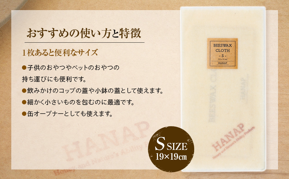 抗菌・保湿作用があり、 野菜やパンを美味しく長持ち W00-015 ミツロウラップ(Sサイズ)
