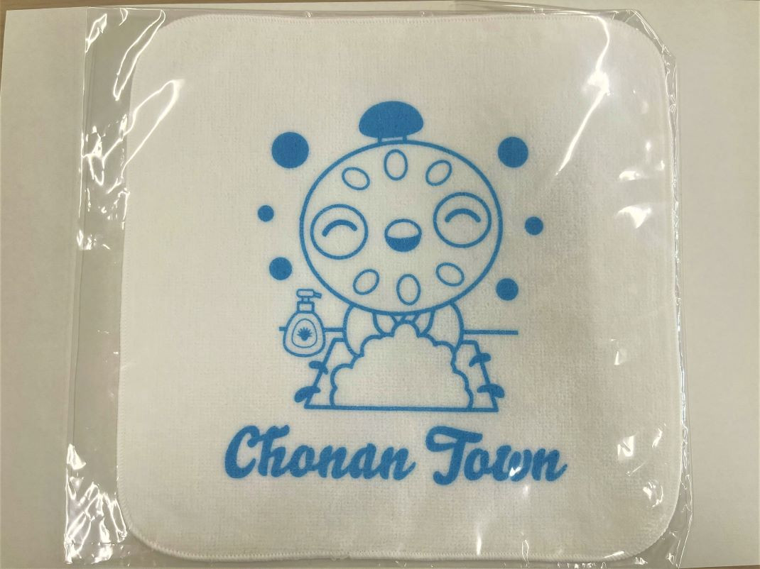 お子様からお年配の方まで幅広く喜ばれる「ちょな丸」オリジナルTシャツとハンドタオルをお届けします。