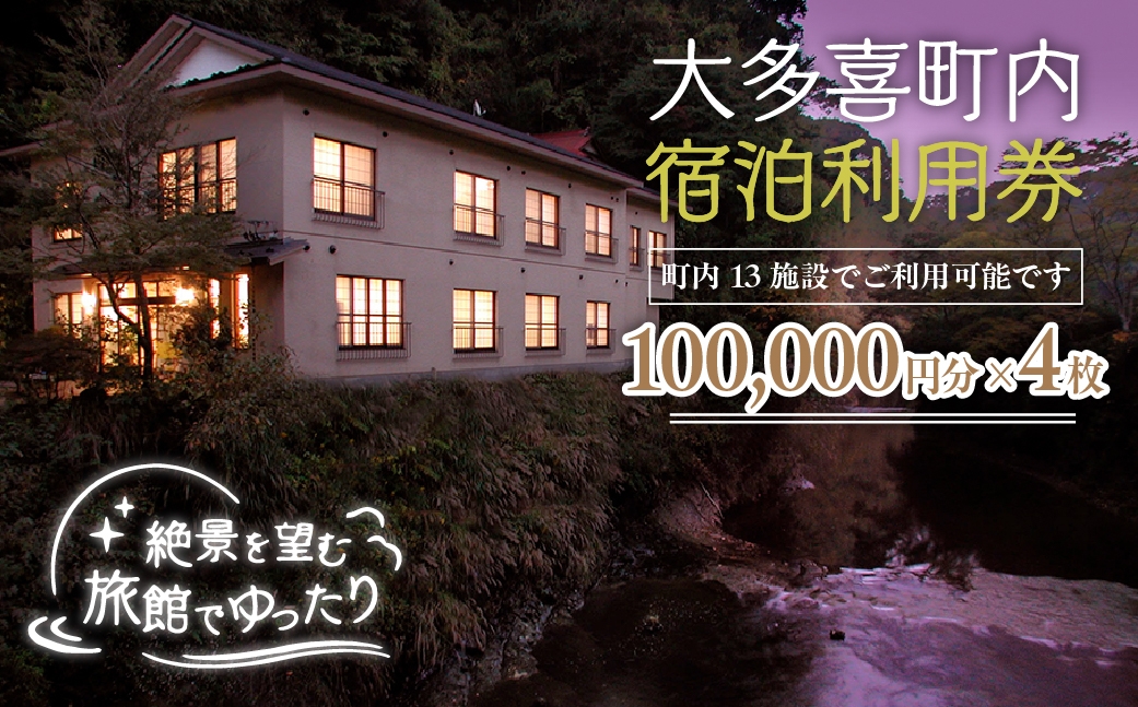 大多喜町内13の宿泊施設の中からご希望の宿泊施設がご利用になれます。 W134001 大多喜町内宿泊利用券100000円分 4枚