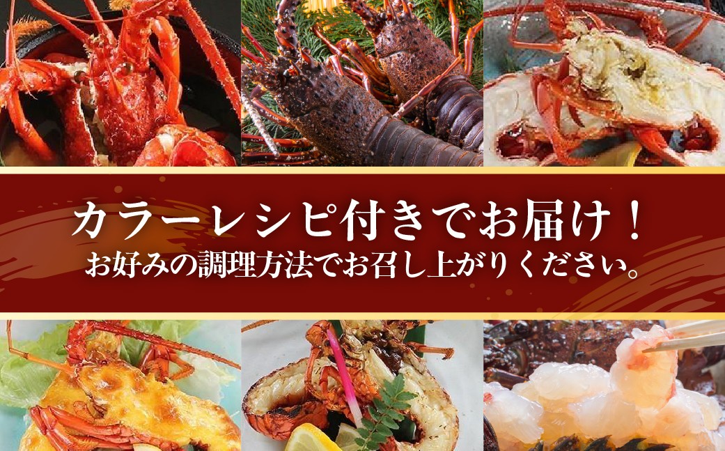 1カットずつのカラーレシピ(伊勢海老のお刺身・マヨネーズ焼き・味噌汁・ボイル・鬼殻焼き)付きでお届けします!お好みの調理方法でお召し上がりください。