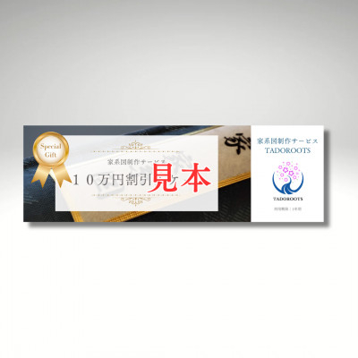本返礼品は、TADOROOTSの家系図制作サービスご利用時に使える100,000円分の割引券です。