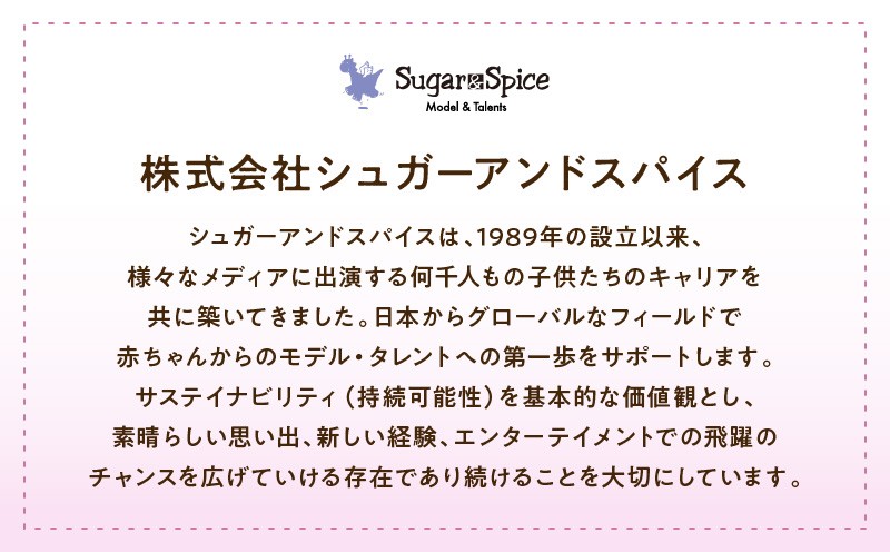 創業36年キッズモデル事務所の老舗、シュガーアンドスパイスがプロデュースする、キッズモデルと子役のための「撮影会」です。