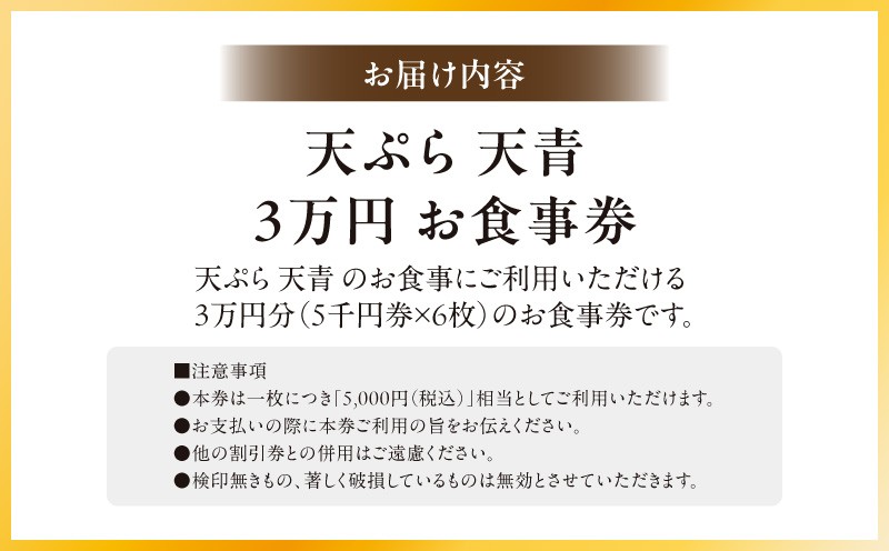 天ぷら 天青 3万円お食事券