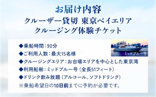クルーザー貸切 東京ベイエリア クルージング体験(90分 15名様まで)