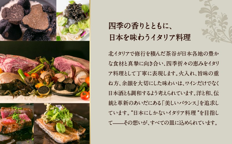 四季の食材に寄り添うシェフ茶谷と、ワインと日本酒の両方を知るマダム(ソムリエ/SAKE DIPLOMA)が、