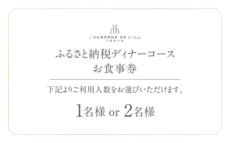 | 容量 | お食事券:【オーベルジュ・ド・リル トーキョー】ふるさと納税 ディナーコース1名様~2名様 |