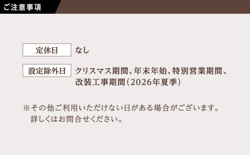 ※設定除外日:クリスマス期間、年末年始、特別営業期間、改装工事期間(2026年夏季)