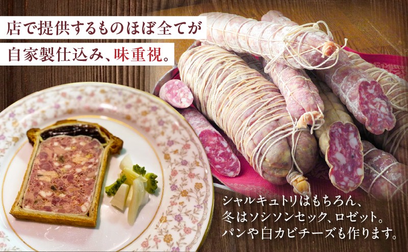 店で提供するものほぼ全てが自家製仕込み、味重視。シャルキュトリはもちろん、冬はソシソンセック、ロゼット。パンや白カビチーズ(サン・マルスランを目指して作った『サン・シャルキュッタン』)も作ります。
