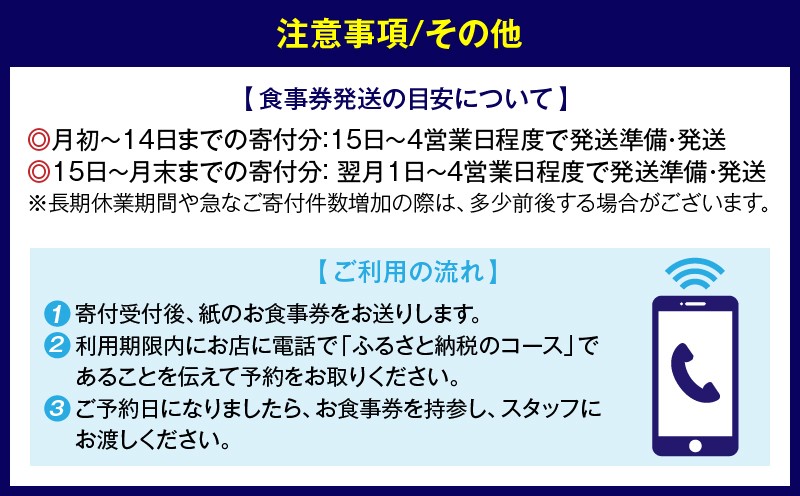 2. 利用期限内にお店に電話で「ふるさと納税のコース」であることを伝えて予約をお取りください。