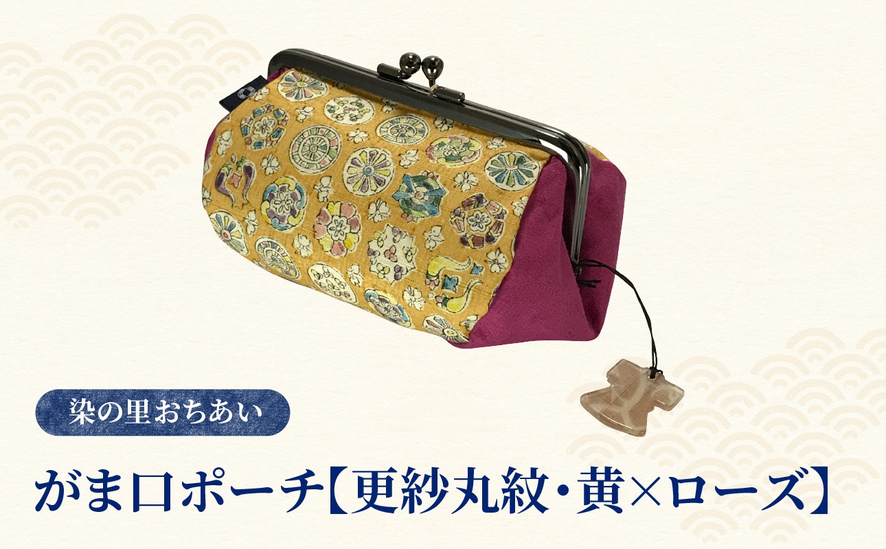 染の里おちあい がま口ポーチ 更紗丸紋黄×ローズ