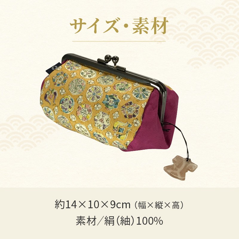| 容量 | 色:黄×ローズ 素材:絹(紬)100% サイズ高さ約9cm横巾約14cm縦巾約10cm |