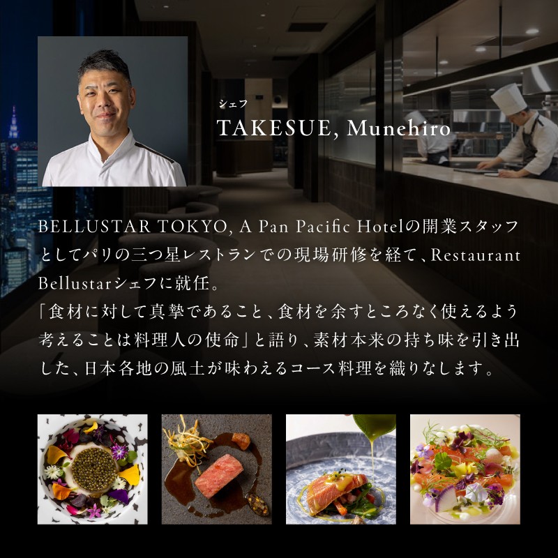 「BELLUSTAR TOKYO, A Pan Pacific Hotel」は、新宿歌舞伎町に誕生した超高層複合施設「東急歌舞伎町タワー」の39階から47階に位置する、地上の喧騒から離れ特別な空間が楽しめる都会のラグジュアリーホテル。 「BELLUSTAR TOKYO, A Pan Pacific Hotel Restaurant Bellustar」は45階に位置し天井高13mの空間から圧倒的な眺望が広がる「天空のレストラン」。 日本各地の素材にこだわり、その土地の風土を感じながら、これからの旅先への期待やこれまでの旅の思い出を食材や器で表現し、フレンチの伝統と文化を守りながら、常に進化する食の体験へと誘います。 ■BELLUSTAR TOKYO, A Pan Pancific Hotel Restaurant Bellustar 〒160-0021 東京都新宿区歌舞伎町1-29-1 東急歌舞伎町タワー45階