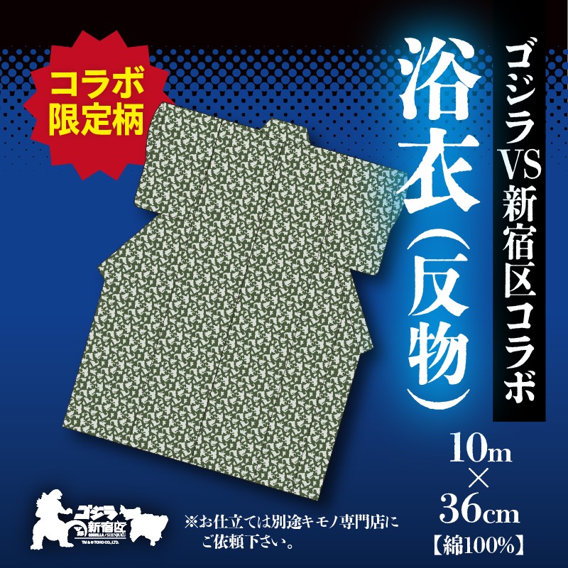 【ゴジラコラボ】ゴジラと新宿区の形を全体にデザインした東京本染め浴衣!