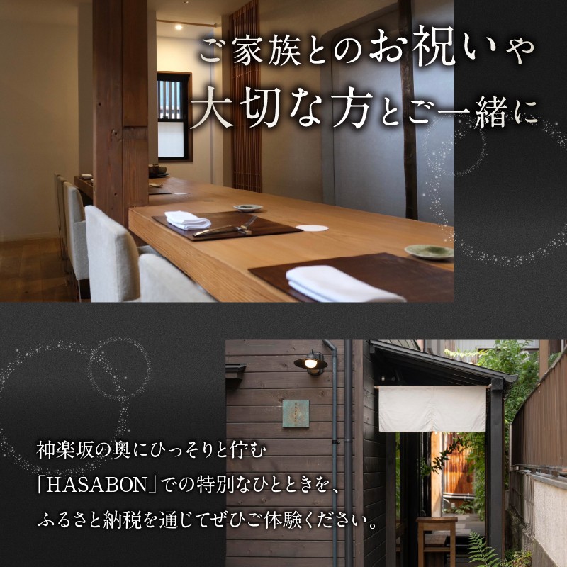 神楽坂の奥にひっそりと佇む「HASABON」での特別なひとときを、ふるさと納税を通じてぜひご体験ください。