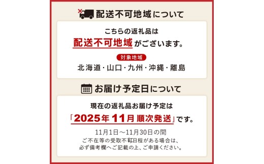 2025年11月以降に順次発送 ※北海道・山口・九州・沖縄・離島への発送はできかねます。 ※配達日時のご指定は承ることができません。 |