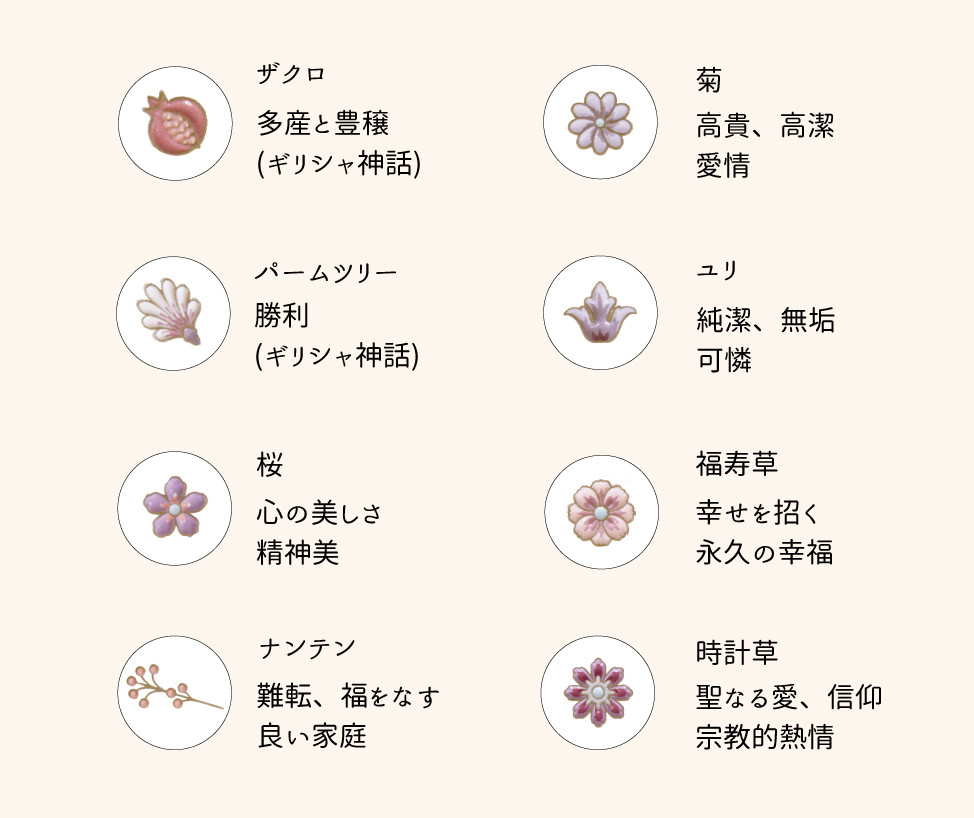 日本と東方世界を象徴する植物が混ざり合ったオリエント柄。しっかり収納しながら、スリムな形を保てるL字ファスナー型。