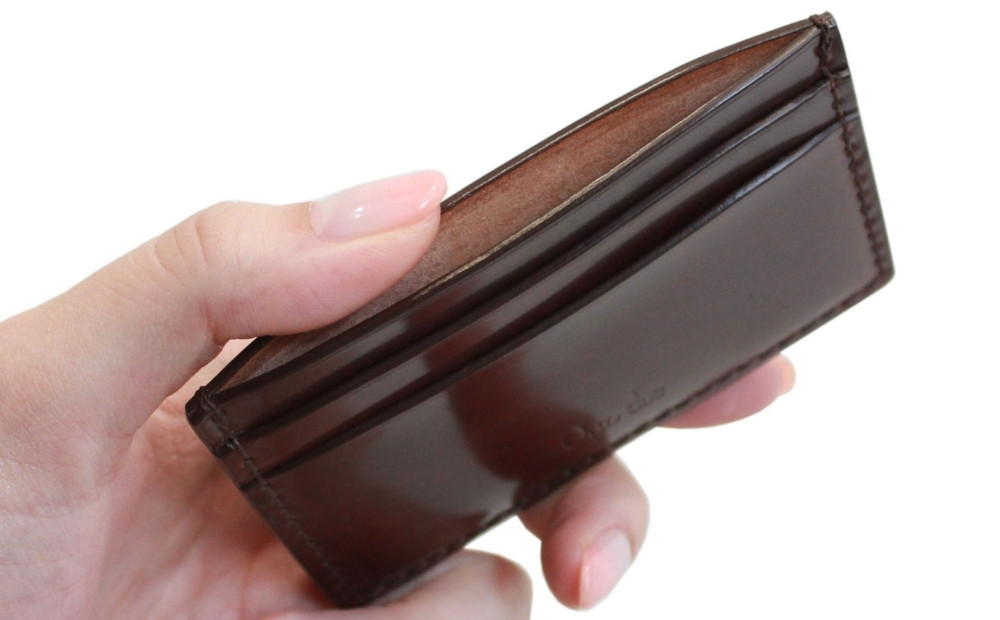職人が1枚1枚手染めしており、コードバン繊維層の密度・厚みがあり他を圧倒する上品なツヤがあります。