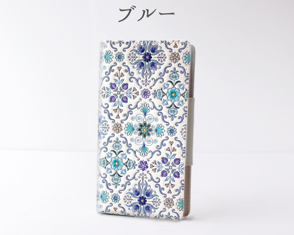 型友禅と手描き友禅の手法を駆使し、職人たちが丹精込めてひとつひとつ手作り 【浅草文庫】スマホケース オリエント柄 (カラー:ブルー)