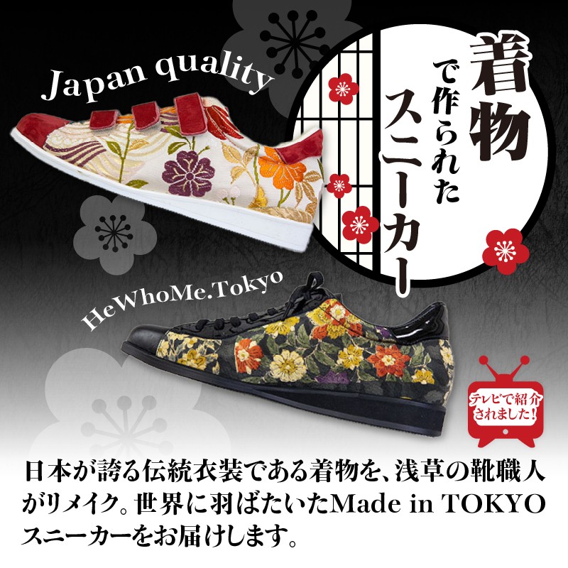 日本が誇る伝統衣装である着物を浅草の靴職人がリメイクし、世界に羽ばたいたMade in TOKYOスニーカーをお届けします。