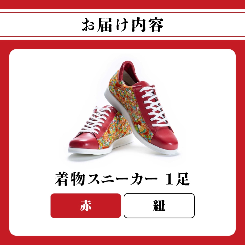 | 容量 | 着物スニーカー 1足 ・サイズ:23.0cm ・デザイン:紐 ・カラー:赤 |