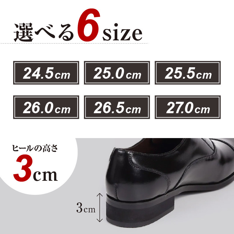 甲革には吟味された天然皮革(牛革)を使用、日本人に足型に合わせて設計した3E木型を採り入れ、中敷きにはショック吸収材を使用し足への負担を軽減した、働く日本人の味方とも言える商品です。