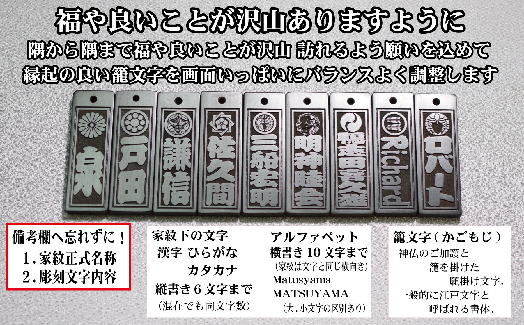 (表面に家紋、縦に文字を彫刻(6文字まで文字数によりバランス調整いたします))