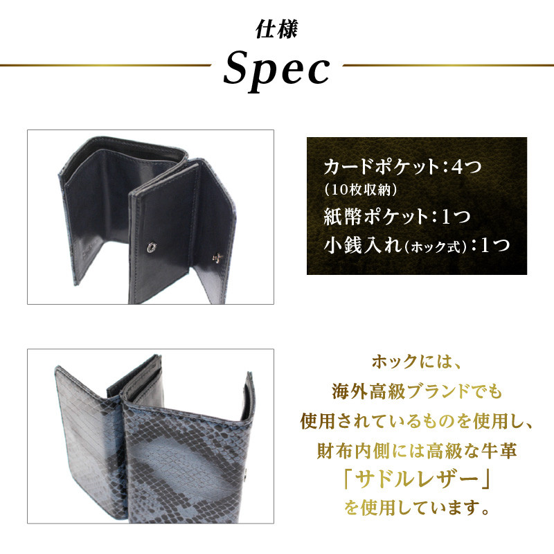 ホックには、海外高級ブランドでも使用されているものを使用し、財布内側には高級な牛革“サドルレザー”を使用しています。