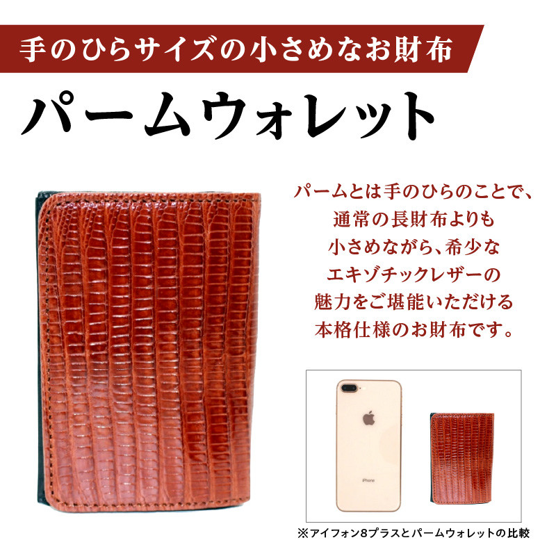 手のひらサイズの小さな財布『ミニ財布 ‐ パームウォレット』 パームウォレット【テジュー(トカゲ革)】(全3色) (カラー:ブラウン)
