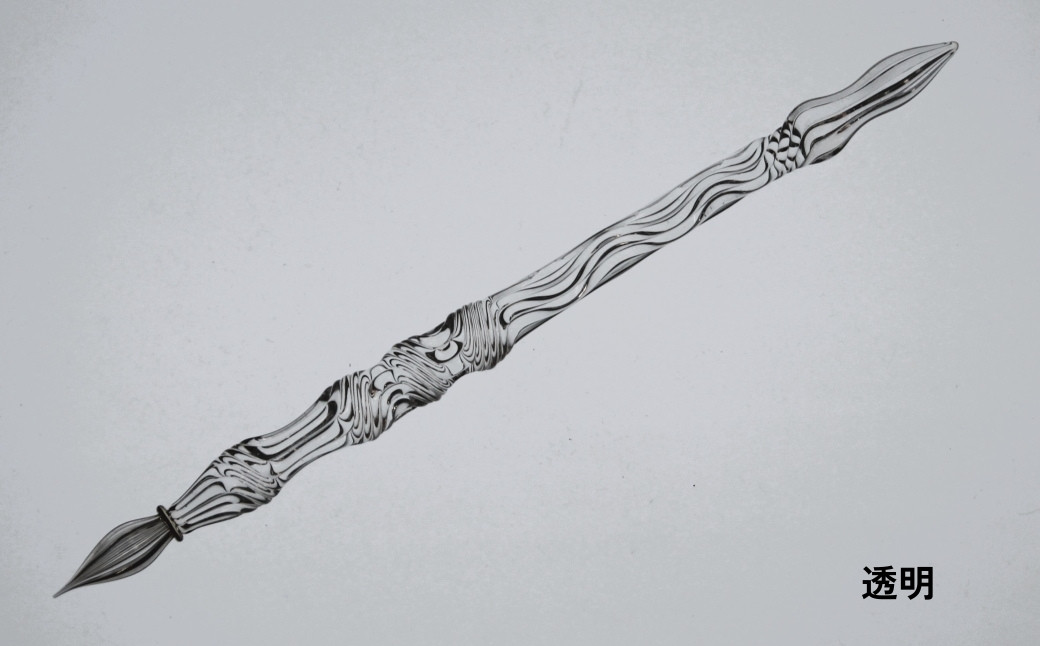 軸の波模様がゆるやかで凹みのあるタイプのガラスペン。