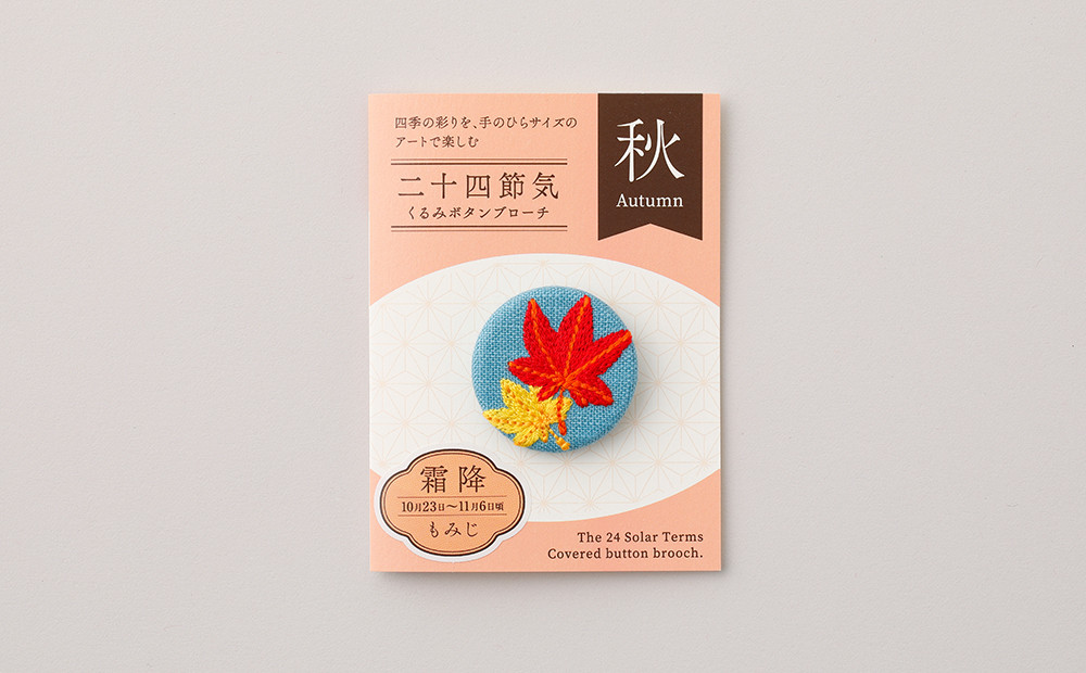 秋セットは「立秋」から「霜降」までの節気モチーフの刺繍ブローチが6つセットになっております。