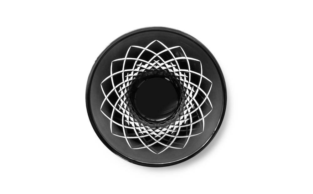 矢来と霰が融合したデザインは、下部に向かうにつれより立体的なカットに変化しています。