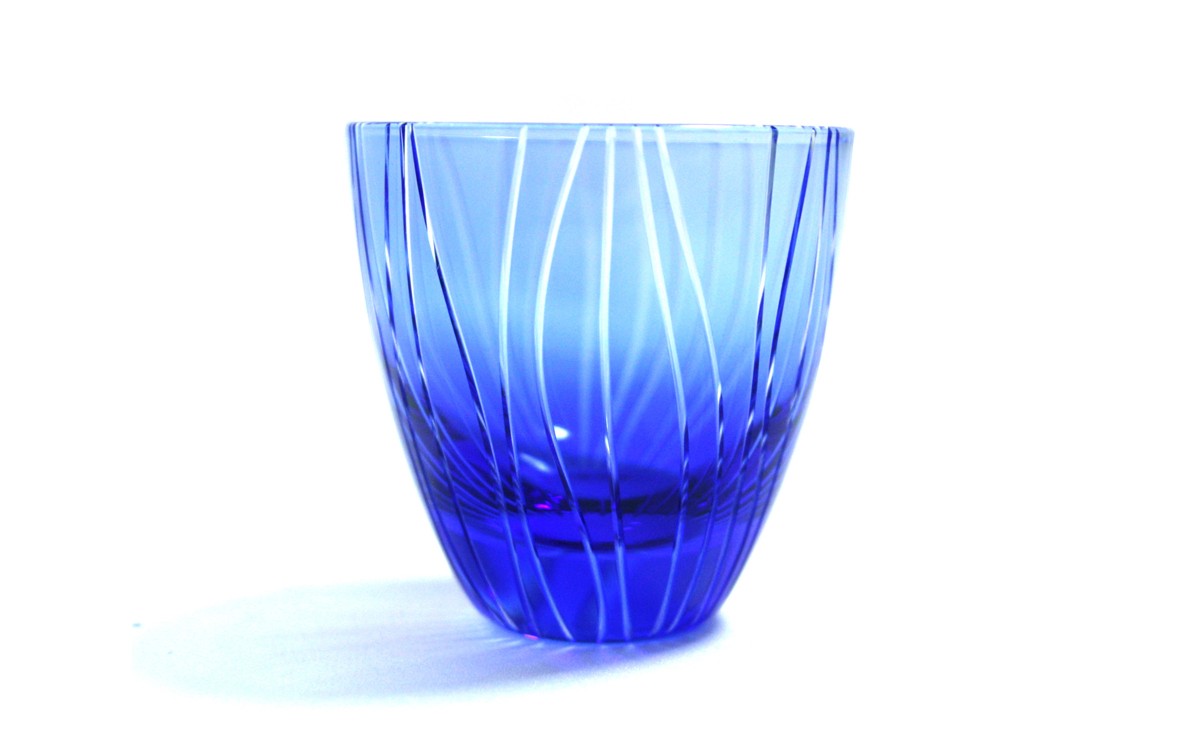 浅草切子 KANA KURITA「ぐい呑 よろけ縞 青藍/金赤<艶消し>」…