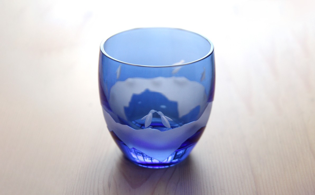 浅草で生まれた創吉オリジナルの切子グラス 浅草切子 aquatic「Penguin Couple 丸オールド青藍」| 切子 花切子 切子ガラス ガラス工芸 グラス ガラス コップ 手作り ぐい呑み 家飲み 酒器 ハンドメイド 手作り ギフト 贈答 プレゼント