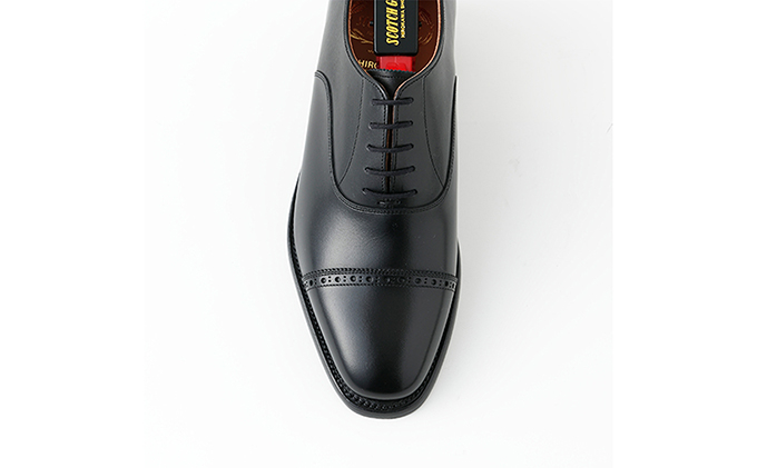 国産高級カーフの質感と丈夫で修理も可能なグッドイヤー製法で作り上げた、キャップのブローグ(穴飾り)がワンポイントで良く映えるデザインです。